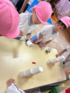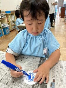 ヨーヨー作りでは線が書いている画用紙に好きな模様を描いて、