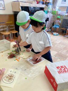 青のりとしょうがをで切って貼り、盛り付けしました!