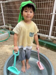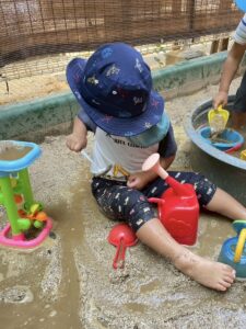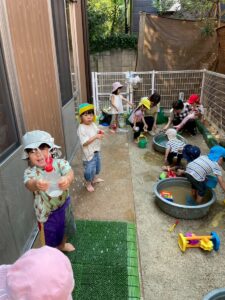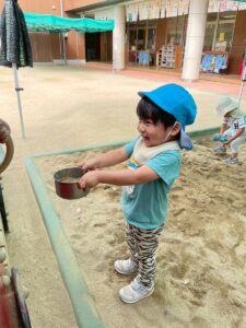 暑さが少し和らいでからはお砂場、園庭で元気に遊んでいます。