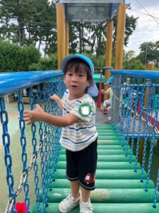ゆらゆら橋、ちょっぴり怖くても先生と手をつないだら大丈夫だったね!!