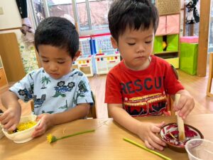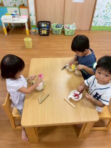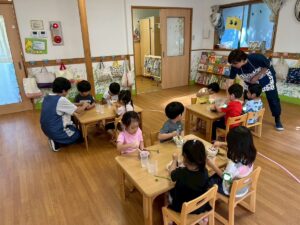 いつもより華やかなケーキやご飯が完成して子ども達も嬉しそうでした。