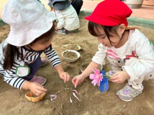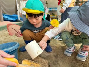 お砂場でお花のご飯やケーキも作りましたよ♡