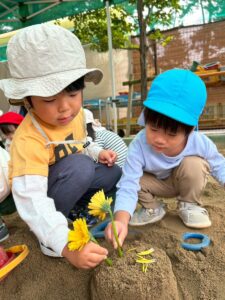 きりん組 10月の様子☆お花遊びと乗り物☆