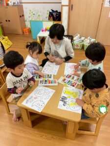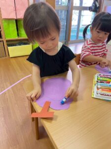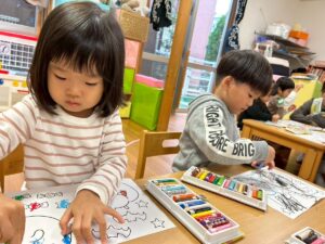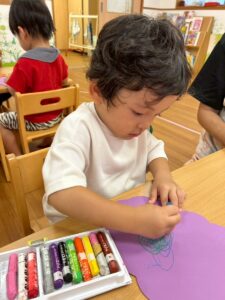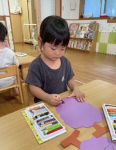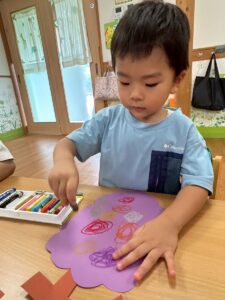 1学期に比べるとじっくり丁寧に塗る姿が見られ、ここでも子ども達の成長を感じることができました。