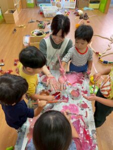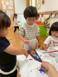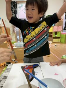 製作後の絵具遊びもいつも通りたっぷり楽しみました♪