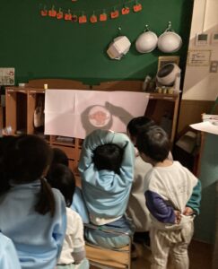 『ひかりショー』開催!!トイレットペーパの芯に絵を描きライトで映し出して遊びました。