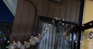 夕方、電飾に当てると、とっても幻想的な作品になりました。