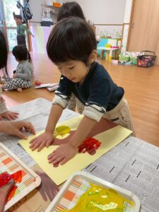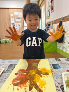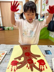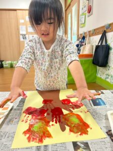 手のひらに絵の具を塗り~