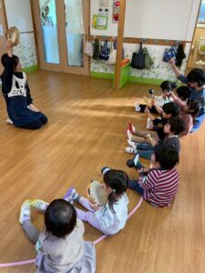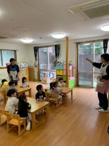 何をするのかな…♪ 初めての事をする前は特に興味津々の子ども達。
