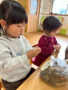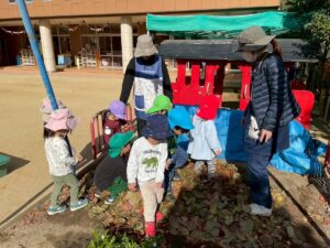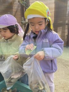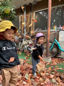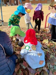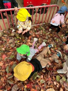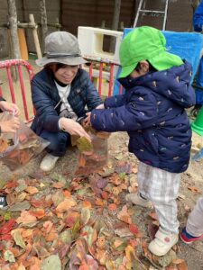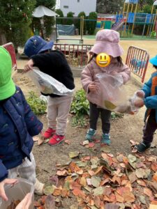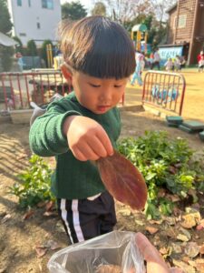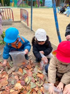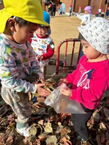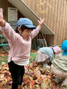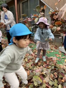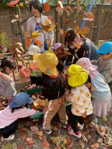 園庭の木々もすっかり紅葉し、きれいな落ち葉がたくさん見られるようになりました。
