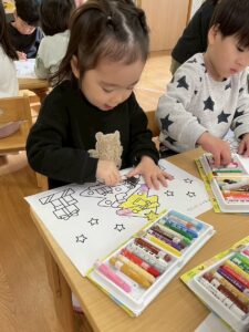 塗り絵やお絵描きも丁寧に取り組めるようになってきました。