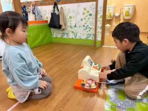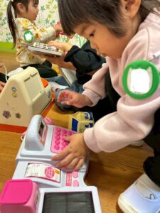 お店屋さんごっこの様子はとってもかわいいですよ。