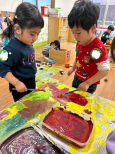 絵の具は何回やっても飽きずに楽しんでくれます!