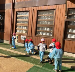 わくわくタイムの外遊び中は、途中にお茶休憩の時間があります。