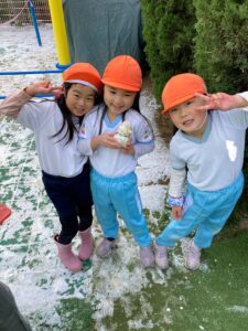 そしてなんと、、、2月9日(月)幼稚園に雪が積もっていました!!⛄