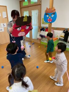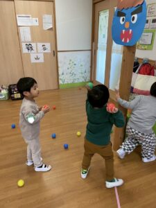 節分の週はボールを豆に見立てて豆まきもしましたよ。