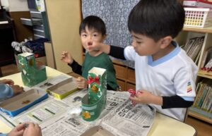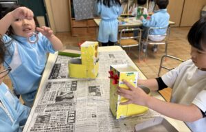 グループの友だちとどんな装飾をつけるか話し合いながら作っていました!