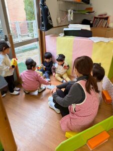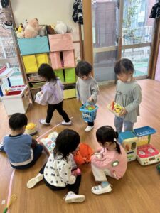 お部屋でもお友達との関りがますます増え「一緒に遊ぼ」と誘いあう姿が増えてきましたよ。