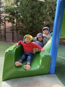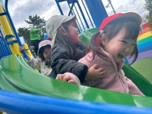 滑り台やお砂場、つき山でも元気いっぱいの子ども達!!